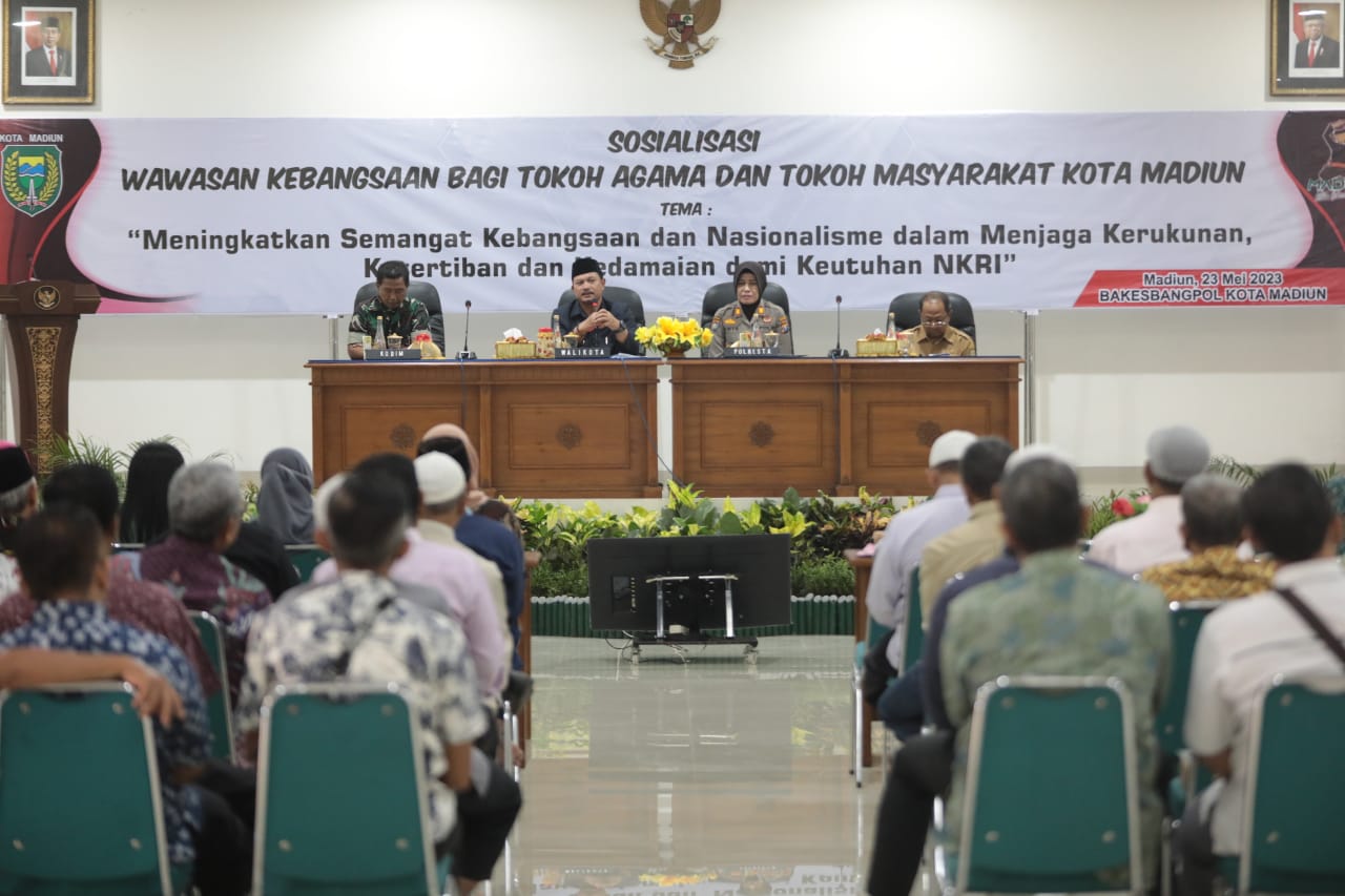 kliksurabaya.co.id-Wawasan kebangsaan perlu terus ditanamkan kepada masyarakat. Karenanya, sosialisasi terkait nilai-nilai wawasan kebangsaan juga terus dilakukan Pemerintah Kota Madiun. Harapannya, dapat meningkatkan semangat kebangsaan dan nasionalisme masyarakat dalam menjaga kerukunan, ketertiban, dan kedamaian demi keutuhan Negara Kesatuan Republik Indonesia (NKRI).